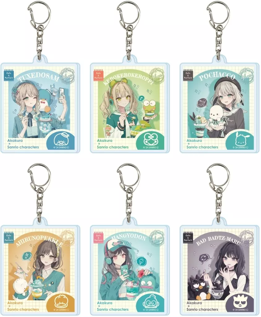 產品解說■在模切進行切割印刷和加工的壓剋力掛件。【商品詳情】共6種尺寸:約65×65 mm以內材質:壓剋力、金屬(C)2024 SANRIO CO.LTD.APPROVAL NO.L650086<陣容>燕尾服山姆ポチャッコ鴨腳ハンギョドン酷企鵝