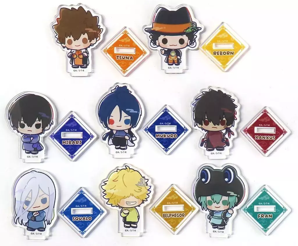 商品解說■TV動畫『家教Hitman REBORN!』交換式迷你角色壓剋力STAND UP登場!【商品詳情】共8種尺寸:高約60 mm以內材質:壓剋力(C)天野明/集英社・東京電視・Rebone製作委員會<陣容>Rebone澤田綱吉雲雀恭彌六道骸XANXUSSpecibu・Sukuarro懶惰法郎