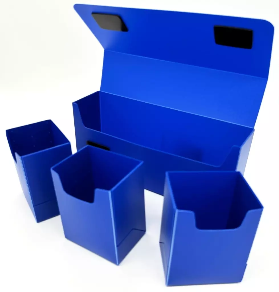 商品解說■BR Triple Deck BOX藍色登場!可放入3 SET 60件3層袖!有內搭盒,使用方便,磁鐵貼且能確實關閉。與收納盒相比,更顯縴細的形狀。【商品詳情本體盒:1個內搭盒:3個樣式:磁鐵貼本體尺寸:W235×D60×H100mm內搭盒尺寸:W75×D55×H95mm