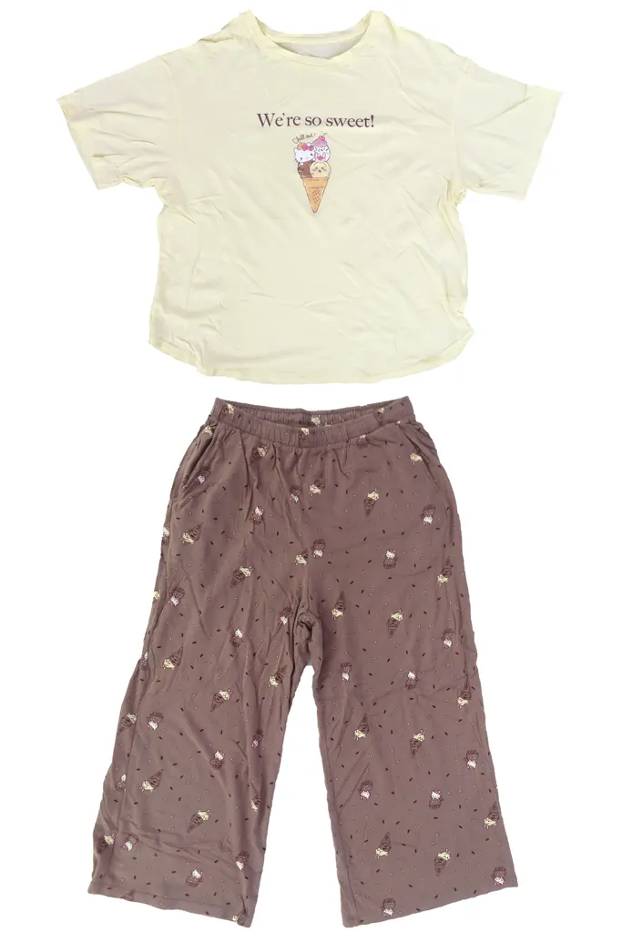 寶貝解說■<小可愛小家伙×三麗鷗角色Chators×優衣庫甜點收藏>的商品。【商品詳情】尺寸:女性用M尺寸材質:上衣:70%人造絲30%棉/下身:70%人造絲30%棉顏色:乳霜
