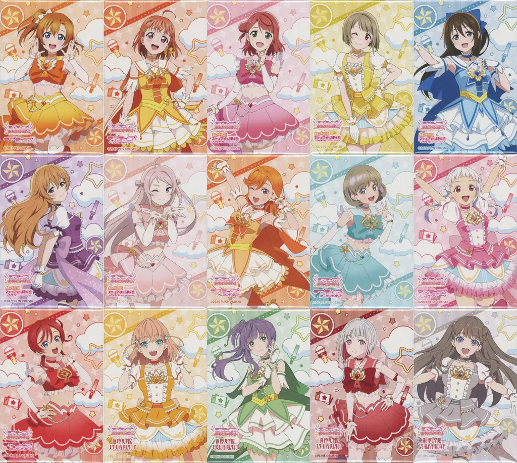 商品解說■周邊商品交換式的徽章共15種SET。【商品詳情】高坂穗乃果高海千歌上原步夢中須Kasumi櫻坂SIZURU近江彼方锺嵐珠涉穀Kanoon唐可可嵐千砂都米女MAY日野下花帆乙宗梢夕霧裝訂藤島慈尺寸:約53×78 mm