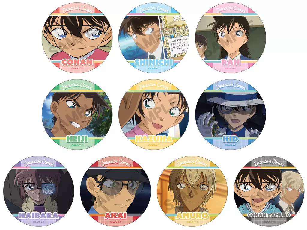 <名偵探柯南>的《交換式徽章vol.8》登場。【商品詳情】共10種尺寸:直徑約56 mm(C)青山剛昌/小學館・讀賣新聞電視・TMS 1996<陣容>江戶川柯南工藤新一毛利蘭服部平次遠山和葉怪盜基德灰原哀赤井秀一安室透江戶川柯南&安室透