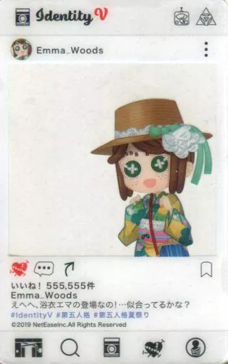 園藝師(Emma Woods)SNS風格透明卡片<Identity V第五人格夏季廟會收藏品IV~一起抽動篇~」A-1獎