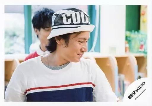 日本名: 生写真(ジャニーズ)/アイドル/関ジャニ∞ 関ジャニ∞/安田章大/横型・バストアップ・衣装白・帽子・顔右向き・両手下げ・後ろに錦戸・「アイスクリーム」PV/公式生写真