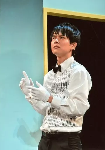 日本名: 生写真(男性)/俳優 平野良/ライブフォト・膝上・衣装白・銀・蝶ネクタイ・左向き・目線上/「名探偵コナン×ライブミステリー洋上の迷宮」ブロマイド