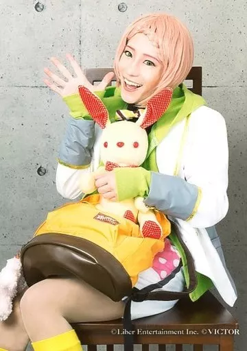 日本名: 生写真(男性)/俳優 丸目聖人(湊奏多)/膝上・座り・衣装緑・白・左向き・右手パー・ぬいぐるみ・キャラクターショット/「アイ★チュウ The Stage ~Stairway to Etoile~」ローソンプリント ブロマイド