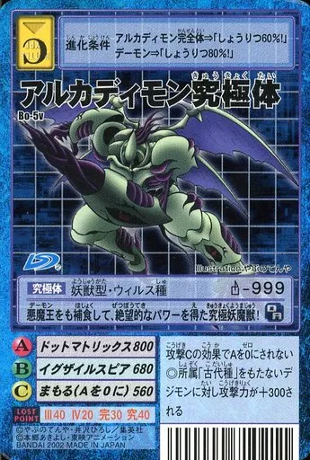 日本名: 旧デジモンカードゲーム/デジモンカード/デジタルモンスターカードゲーム 拡張ボード デジモンアドベンチャーVテイマー01 SP Bo-5v:アルカディモン究極体