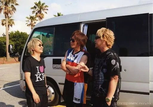 日本名: 生写真(男性)/声優 谷山紀章・勝杏里・林勇/横型・膝上・サングラス・谷山腕組み・後ろ車/DVD「TAKE ME TO THE CHIVER ~谷山紀章のロックな休日~ 上下巻パック」アニメイト購入特典ブロマイド