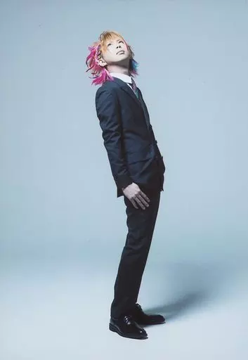 日本名: 生写真(男性)/ヴィジュアル系バンド/カメレオ カメレオ/Kouichi/全身・衣装黒・白・ネクタイ・体右向き・目線上・背景水色/CD「妄想日記」特典フォト