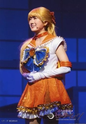 日本名: 生写真(乃木坂46)/アイドル/乃木坂46 樋口日奈(セーラーヴィーナス)/ライブフォト・膝上・衣装白・オレンジ・両手重ね・体左向き・背景青・キャラクターショット/Team MOON/乃木坂46版 ミュージカル「美少女戦士セーラームーン」ランダム舞台写真ブロマイド