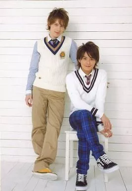 日本名: 生写真(男性)/アイドル/WaT WaT/ウエンツ瑛士・小池徹平/全身・衣装白・ベージュ・ジーンズ・小池足組み・椅子に座り/「WaT LIVE TOUR 2008」物販生写真