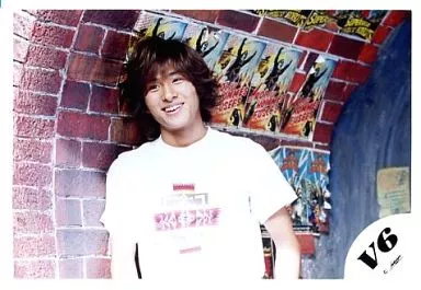 日本名: 生写真(ジャニーズ)/アイドル/V6 V6/三宅健/横型・上半身・衣装白・寄りかかり・目線左・背景レンガ/公式生写真