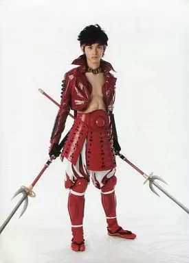 生寫真(男)/演員 片岡信和(真田幸村)/全身·服裝紅·兩手槍·背景白·2L尺寸/舞台劇<戰國BASARA>首次演出