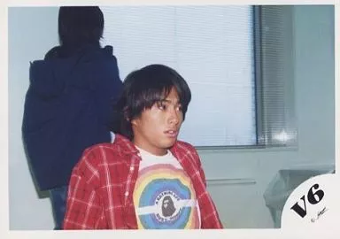 日本名: 生写真(ジャニーズ)/アイドル/V6 V6/三宅健/横型・バストアップ・衣装赤・白・目線右向き/公式生写真