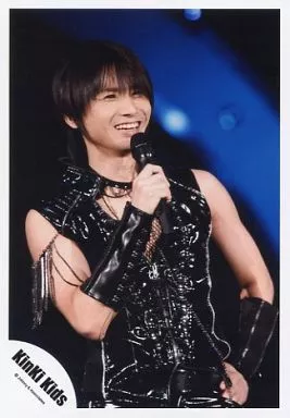 日本名: 生写真(ジャニーズ)/アイドル/Kinki Kids Kinki Kids/堂本光一/ライブフォト・上半身・袖無し衣装黒・右手マイク・笑顔・背景青/公式生写真