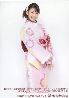 生寫真(萬聖節前夜)/偶像/Berryz工房 Berryz工房/菅穀梨沙子/膝上・和服粉色・右手抓左手腕・笑臉・背景白/劇團HALLOPRO升旗公演<從江戶來的電話?~穿越到圈外~」希雅TARGREEN・BIGTREE2006/11/5公演