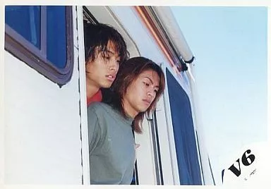 V6/三宅健·森田剛/橫式·上半身·服裝紅色·灰色·身體向右·視線下/正式生寫真