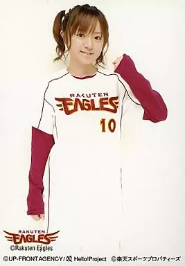 日本名: 生写真(ハロプロ)/アイドル/モーニング娘。 モーニング娘。/紺野あさ美/膝上・衣装白赤・左手上げ・楽天イーグルス・背景白/公式生写真