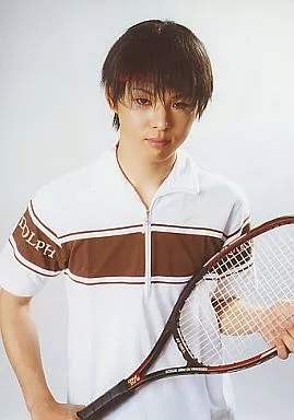 日本名: 生写真(男性)/俳優 加藤良輔(木更津淳)/上半身/ユニフォーム/ラケット抱え/背景白/ミュージカルテニスの王子様 More than Limit 聖ルドルフ学院