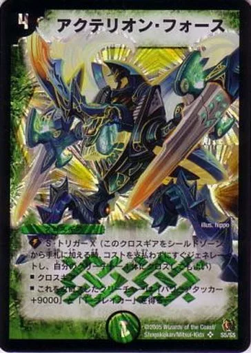 日本名: デュエルマスターズ/SR/自然/クロスギア/[DM-15]転生編 第2弾 神滅奥義継承(シークレット・オブ・ヒドュン・ギア) S5/S5[SR]:アクテリオン・フォース