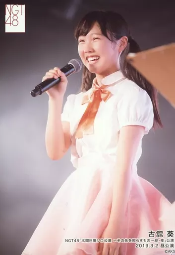 生寫真(AKB48·SKE48)/偶像/NGT48 古館葵/現場照片·膝上·服裝白色·橙色·朝左·右手麥剋風·開口/NGT48<本間日陽個人公演~照亮前方的東西~白天·夜晚>公演隨機生寫真2019.3.2白天公演