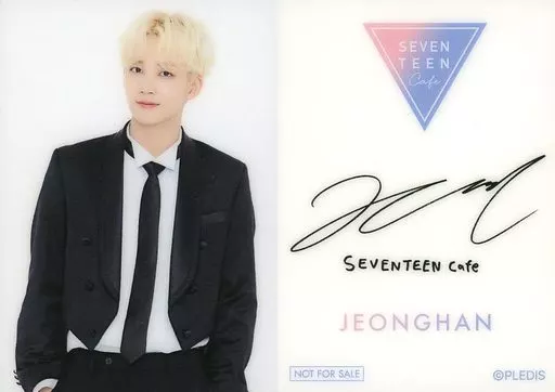 日本名: コレクションカード(男性)/「SEVENTEEN CAFE 2019」表参道・心斎橋・名古屋会場限定 事前予約特典オリジナルカード SEVENTEEN/JEONGHAN(ジョンハン)/衣装黒・白・裏面白・印刷サイン入り/「SEVENTEEN CAFE 2019」表参道・心斎橋・名古屋会場限定 事前予約特典オリジナルカード