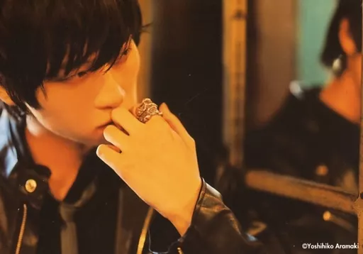 日本名: 生写真(男性)/俳優 荒牧慶彦/横型・バストアップ・衣装黒・左手口元・顔右向き・後ろ鏡/イベント「まきまつりvol.2」ランダムブロマイド(わるまき)