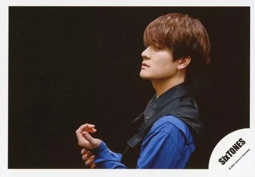 日本名: 生写真(ジャニーズ)/アイドル/SixTONES SixTONES/森本慎太郎/横型・バストアップ・衣装黒.青・左向き・背景黒/シングル「NAVIGATOR」MV&ジャケ写オフショット/公式生写真