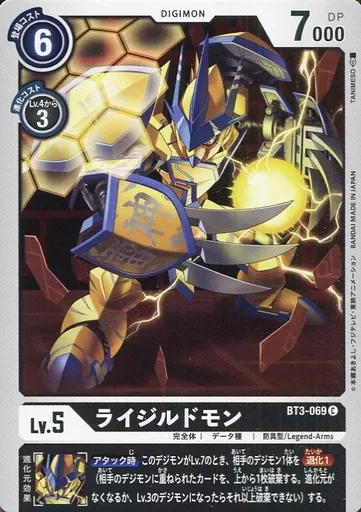 日本名: デジモンカードゲーム/C/DIGIMON/黒/完全体/データ種/防具型/Legend-Arms/Lv.6/DP7000/ブースター ユニオンインパクト【BT-03】 BT3-069[C]:ライジルドモン