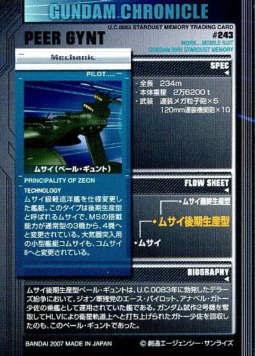 分類:機械師/稀有度:一般CARDDAS MASTERS高達編年史~0083星塵記憶編~本商品僅為交換式卡(單人)。不含其他商品。