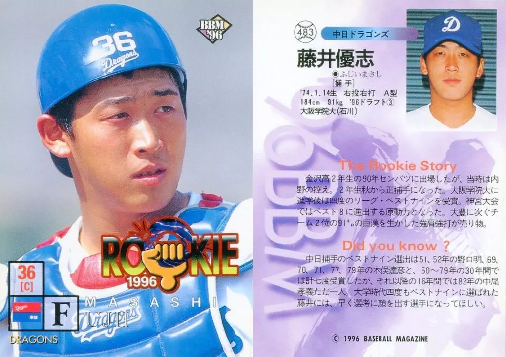 BBM/標準卡/BBM1996棒球卡 483[常規卡]:藤井優志