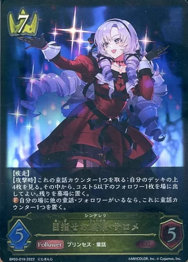 日本名: シャドウバース エボルヴ/LG/フォロワー/ブースターパック第3弾「フレイム・オブ・レーヴァテイン」 BP03-019[LG]:目指せお嬢様・サロメ