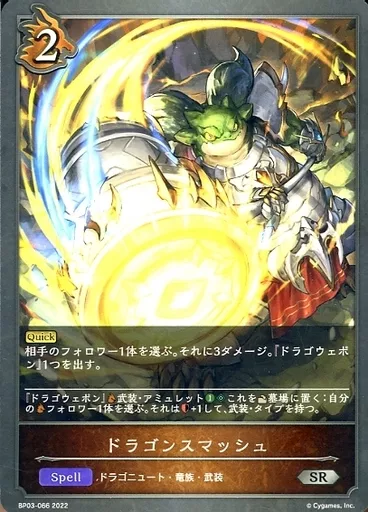 日本名: シャドウバース エボルヴ/SR/スペル/ブースターパック第3弾「フレイム・オブ・レーヴァテイン」 BP03-066[SR]:ドラゴンスマッシュ