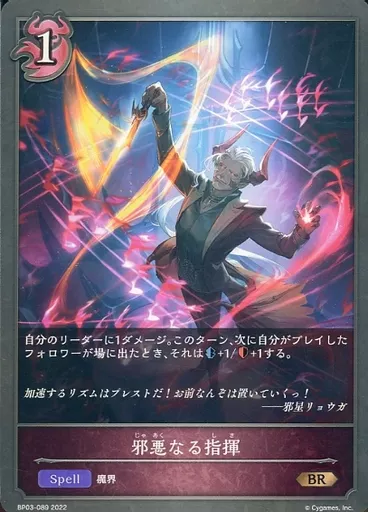 日本名: シャドウバース エボルヴ/BR/スペル/ブースターパック第3弾「フレイム・オブ・レーヴァテイン」 BP03-089[BR]:邪悪なる指揮