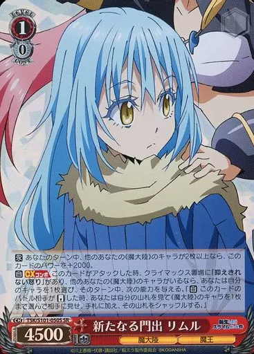 分類:角色/一分熟度:SR系列:Booster Pack關於我轉生變成史萊姆這檔事Vol.3產品解說■TV動畫"關於我轉生變成史萊姆這檔事第2期"在Weiss Schwarz登場!◇Neo Standard構築區分僅用以"TSK/"開頭的卡號的卡片就能組裝連廊。