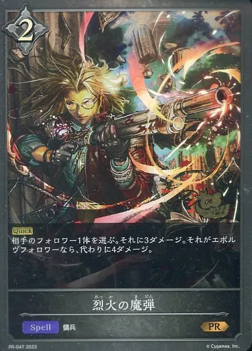 日本名: シャドウバース エボルヴ/PR/スペル/「CS Spring Challenge大会」参加賞 PR-047[PR]:烈火の魔弾(新規イラスト版)(CS2023ロゴ入り)