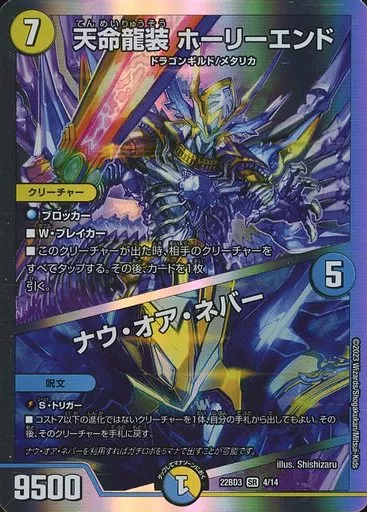 日本名: デュエルマスターズ/SR/光/水/[DM22-BD3]開発部セレクションデッキ 「7軸ガチロボ」 4/14[SR]:天命龍装 ホーリーエンド/ナウ・オア・ネバー