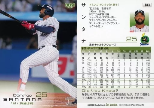 日本名: BBM/レギュラーカード/2023 BBM ベースボールカード 1stバージョン 183[レギュラーカード]:サンタナ