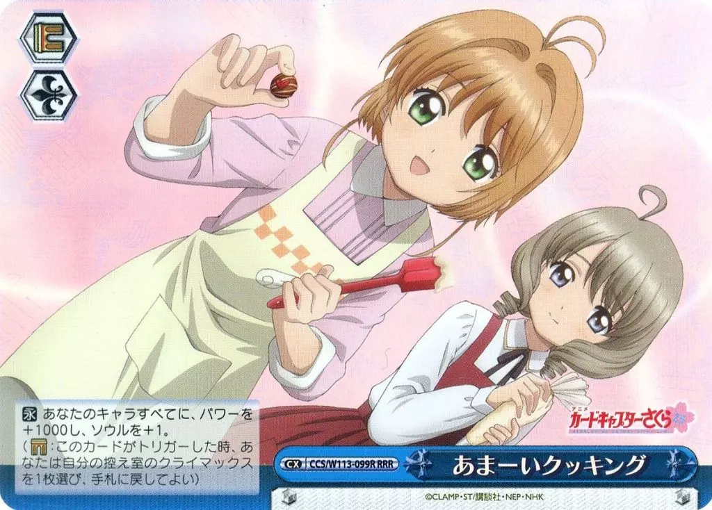 分類:高潮/一分熟度:RRR系列:Booster Pack庫洛魔法使25 th Anniversary產品解說■為紀念動畫"庫洛魔法使"放送25周年,再次參加Weiss Schwarz!◇Neo Standard構築區分僅用以"CCS/"開頭的卡號的卡片就能組裝連廊。