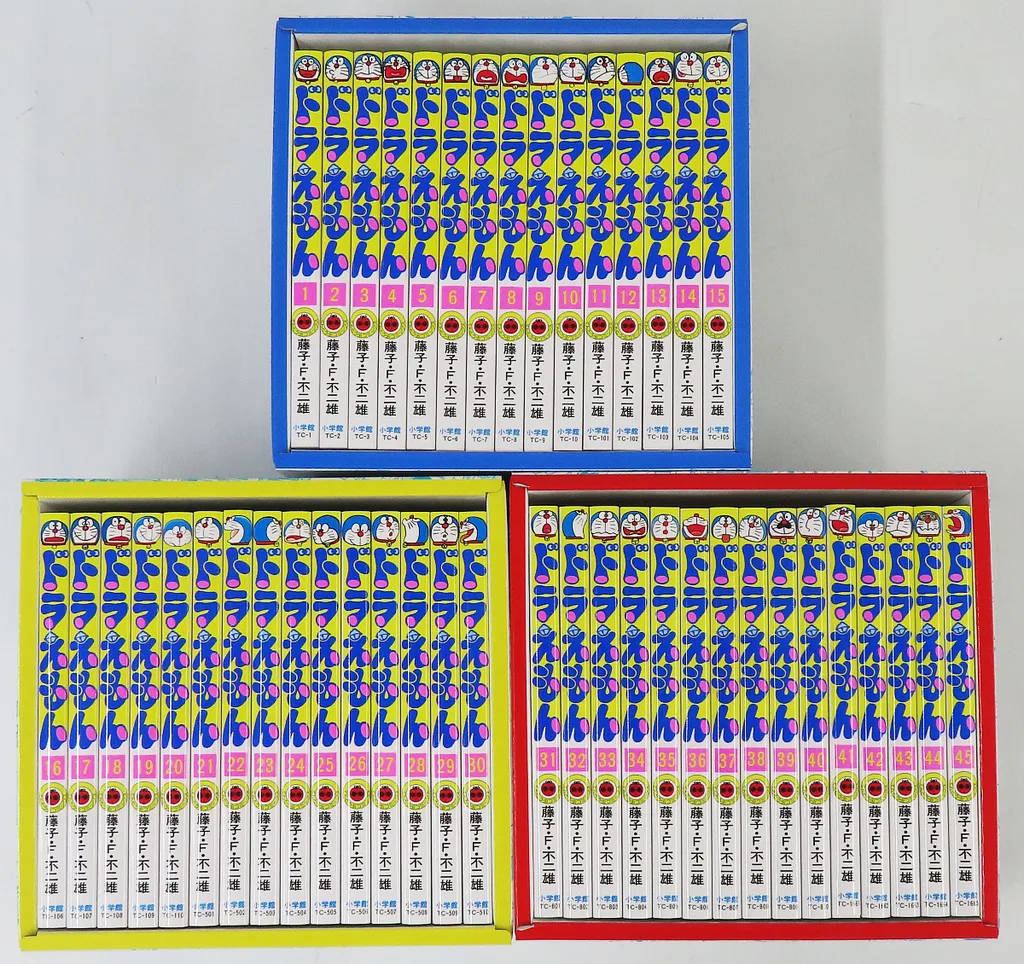 45巻セット/ケース付/専用ボックス入り全巻セットがついに登場! てんとう虫コミックス『ドラえもん』全45巻に、はじめての全巻セットがついに登場!内容は通常のてんとう虫コミックスそのままに、全45巻を15冊ずつ、本棚としても使える3つのかわいい箱に収納した状態で、輸送用ケースに入れてお届けします。本文の漢字にはすべてふりがなが振られており、ご入学、ご卒業、お誕生日、クリスマスなどのプレゼントにもぴったりです。 【編集担当からのおすすめ情報】 読者の皆様からのご要望にお応えする形で、「ドラえもん」の全巻セットがついに登場です!ブックデザイナー・名久井直子氏デザインのかわいい専用ボックスに入ってお届けします。お子様、ご親戚、ご家族、ご友人にはもちろん、ご自身へのプレゼントにもぴったり! 一生もののセットをお楽しみください。